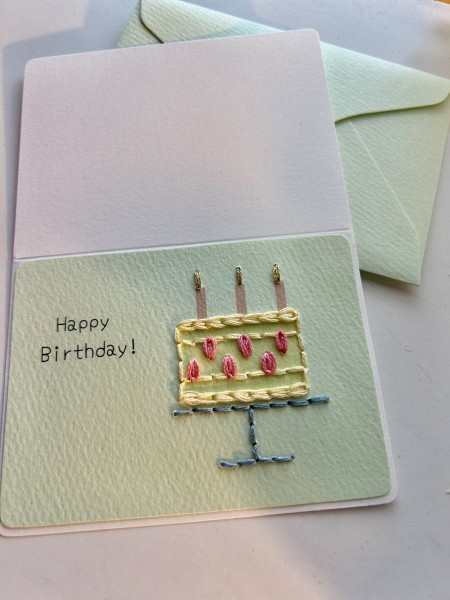 紙刺しゅうバースデーカードです。 ハーフポストカードサイズで作りました。