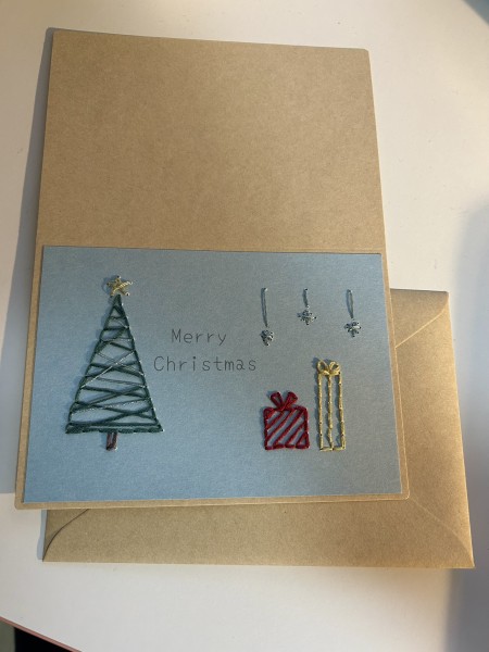 紙刺しゅうのクリスマスカードです。 カジュアルで落ち着いた感じをイメージして作りました。