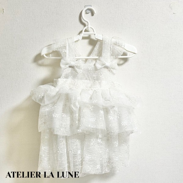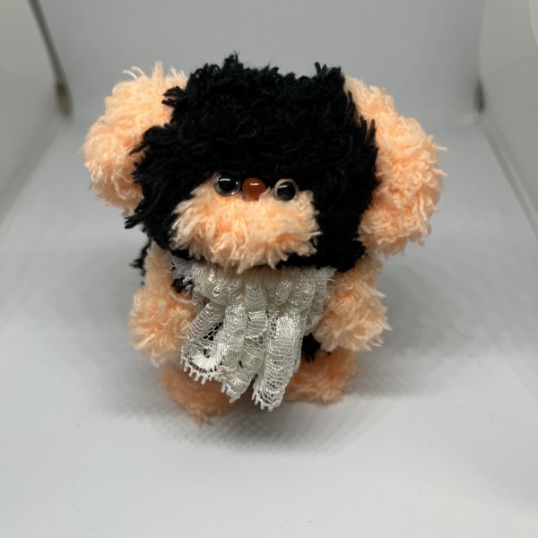 簡単にできるものの講習に講師として呼んでいただき、その講座の練習でモールドールを作ってみました。 家にあったゴムとハギレとレースでスタイとりぼんも作り、付けてみました。 余った針金は切らずに大きな丸い尻尾にして、自立できるようにしました。 30分とかからず完成しました。