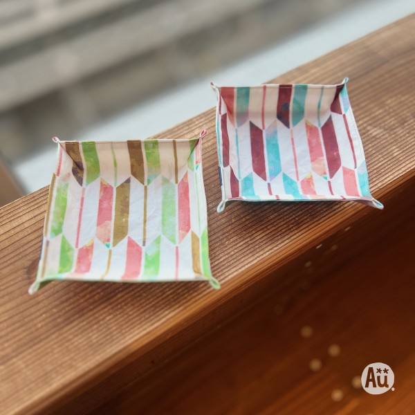 日本の吉祥文様『矢絣』を、水彩タッチでデザインした生地で、ファブリックトレイを作りました。 デザイン: Yagasuri Watercolor Arrows コレクション: Auspicious Patterns