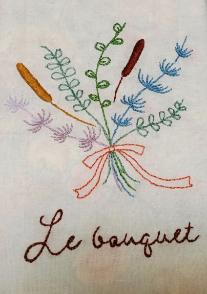 セリアの 中級刺繍図案を刺しました セリアの刺繍糸と、DMCの刺繍を使いました 個人的には、リボン部分に使ったDMC351番のオレンジっぽい糸が気に入りました