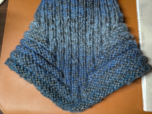 ベルンド・ケストラーさんのニット帽を作りました ゴム編みが縮むのを利用した模様で、ぐるぐる編んでいくと、 自然と耳当て部分ができていきます 吸湿発熱素材の毛糸と、モヘア調の毛糸を引き揃えたので、ほわほわと暖かい帽子になりました