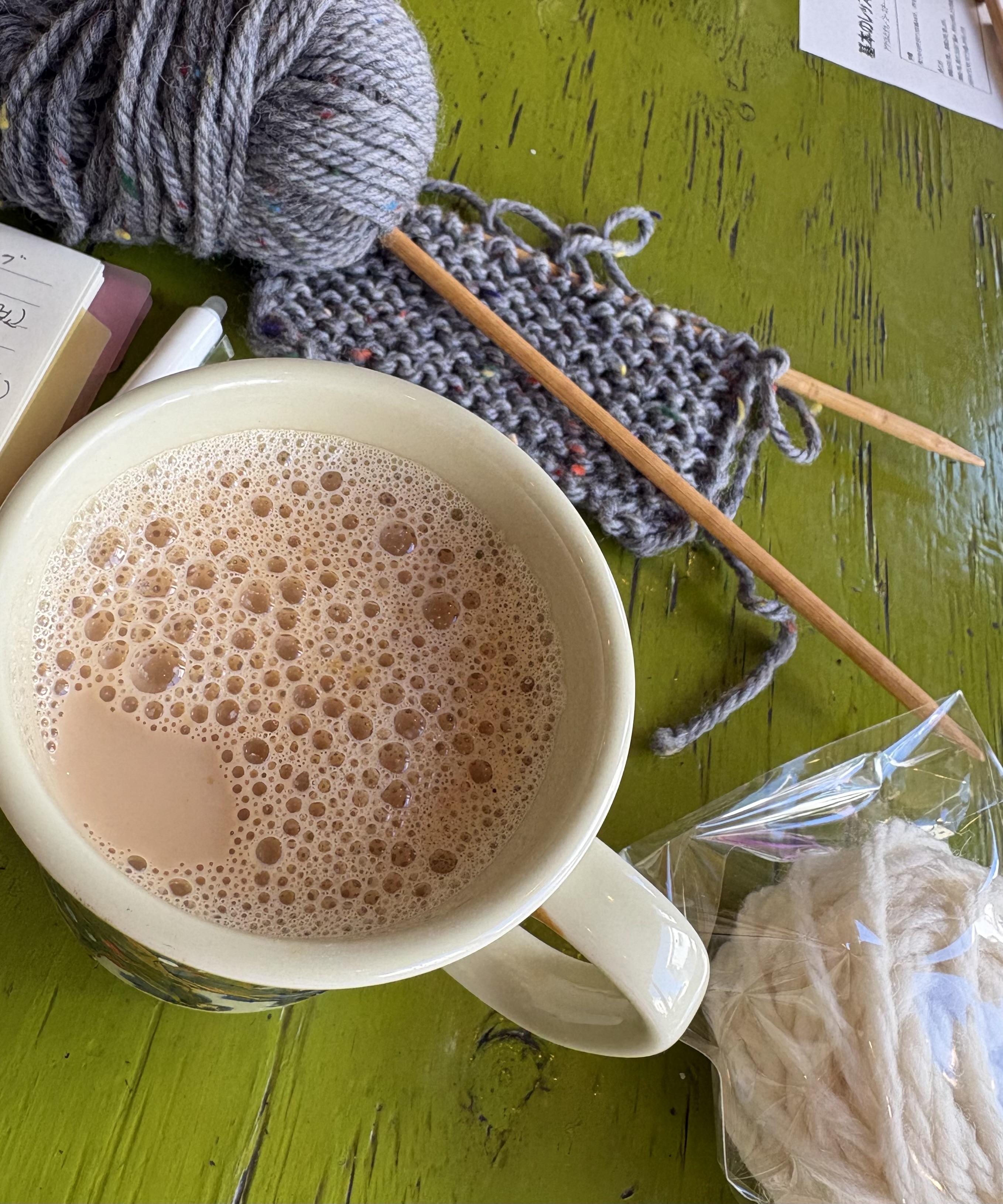 フェザーモール、オーロララメ、波波糸1本、コットン1本