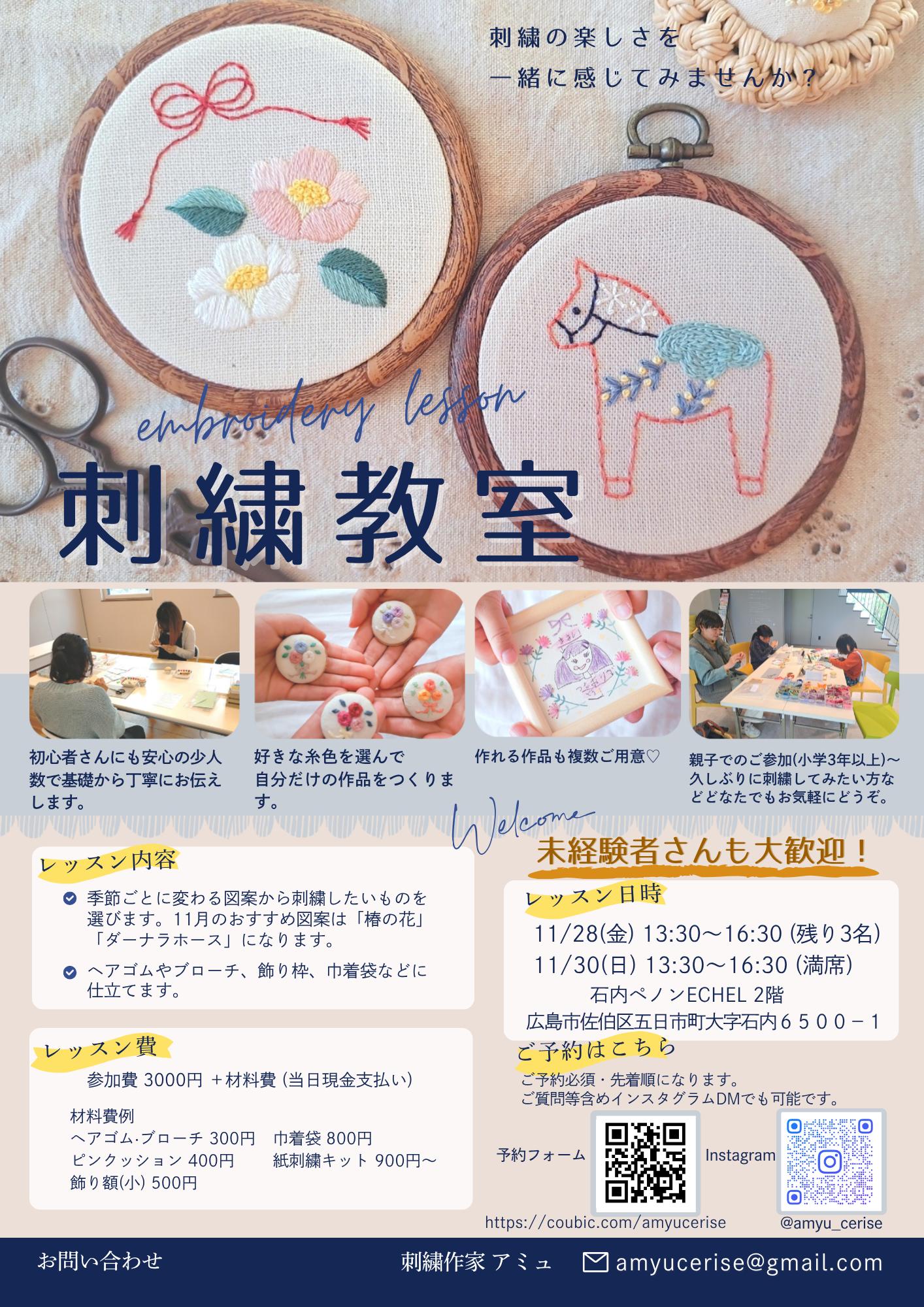 11/21 オフフープ(R)立体刺繍 1DAYレッスン&お試し講座