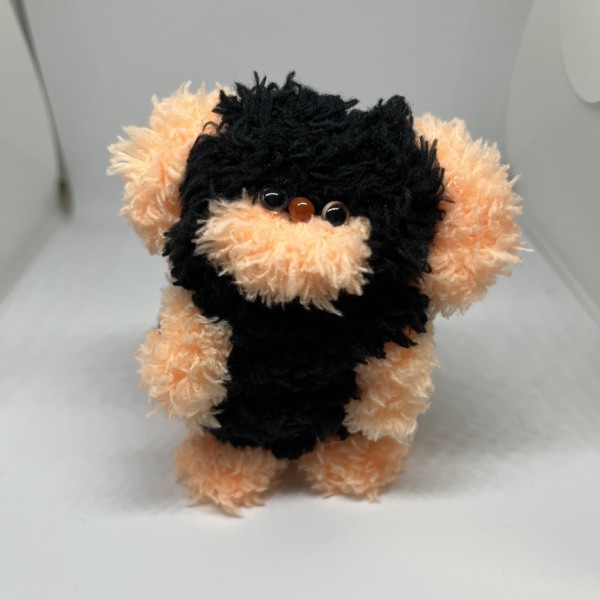 講習のレクチャー時に手順を教えながら出来上がったモールドール。色の違いがはっきりしているのと、ハロウィンが近いので黒とオレンジのモールを使いました。モコモコモールなので小ぢんまりして見えます。レース時のハギレにギャザーを寄せてジャボ風前掛けも付けました。
