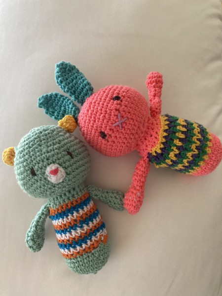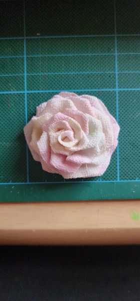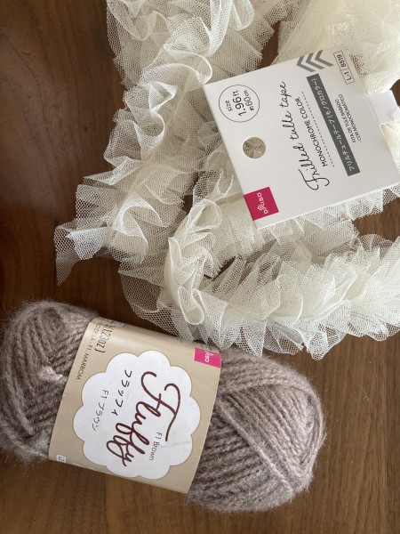 簡単にできるものの講習に講師として呼んでいただき、その講座の練習でモールドールを作ってみました。 家にあったゴムとハギレとレースでスタイとりぼんも作り、付けてみました。 余った針金は切らずに大きな丸い尻尾にして、自立できるようにしました。 30分とかからず完成しました。