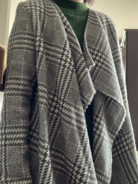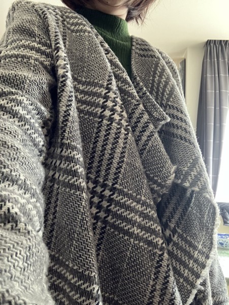 チェックのウール地で羽織りを作成。