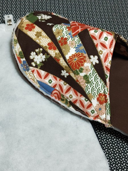 表も裏もキルト芯使用で、生地の重なりも多く、返し口からひっくり返すのが少し大変でした