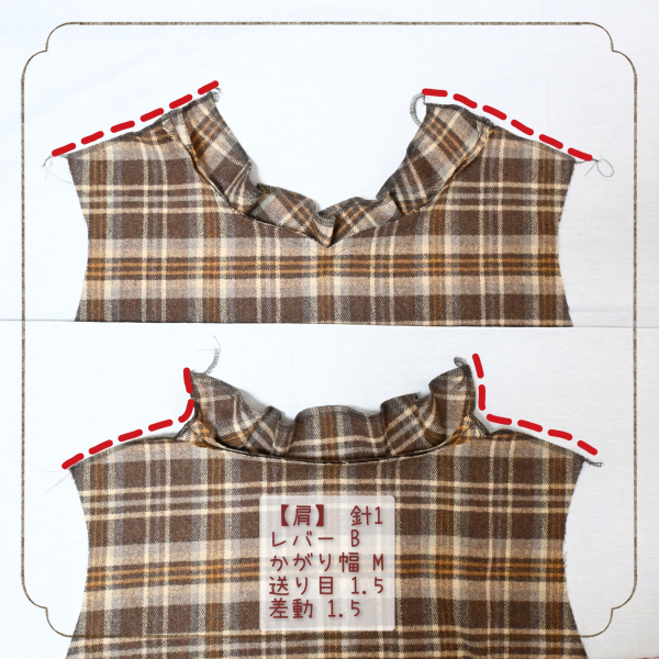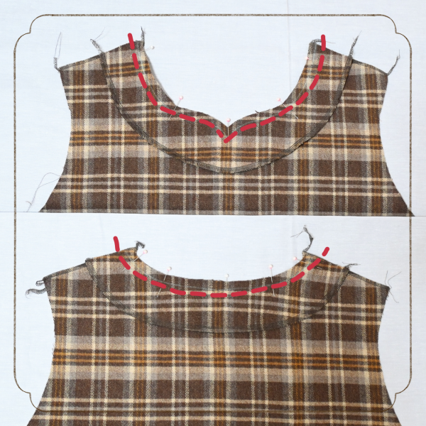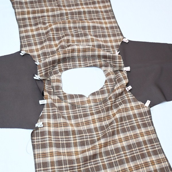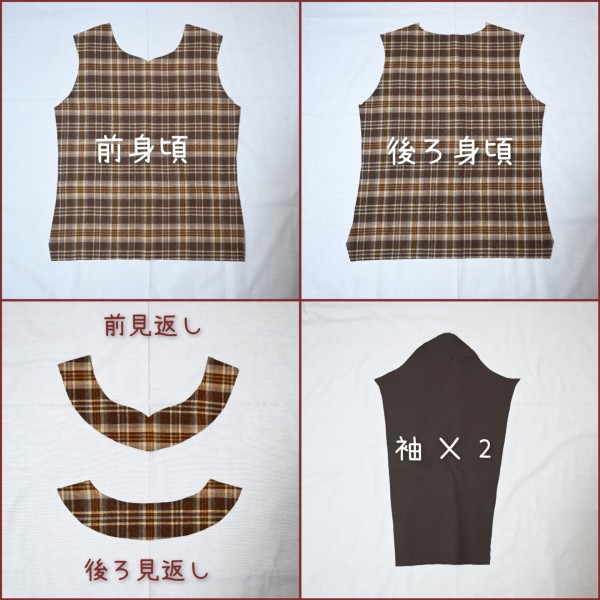 見返しと前後の見頃をそれぞれ中表に重ね、