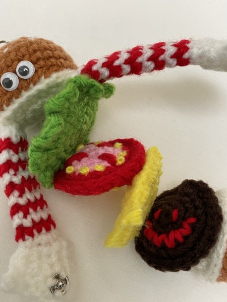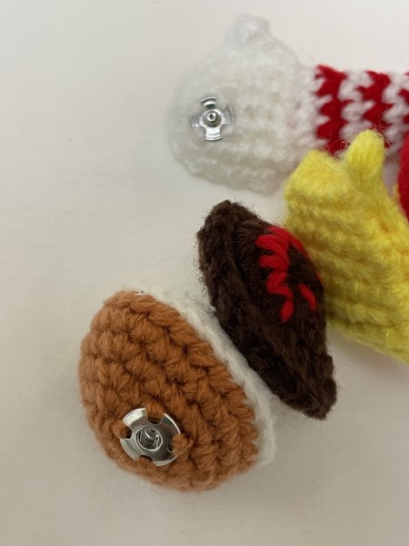 モリモリの具材を両手のスナップボタンで止めています。ボタンを取ると、具材が蛇腹になっています。