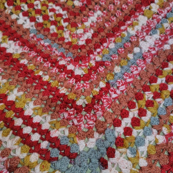 | 年末から編み始めて、製麺何回か繰り返しつつ完成しましたよ。 YouTuberいつの間にか62歳さんの動画を参考にさせていただきました。 玉編み入りまくるので糸食うこと…おかげさまで可愛い編地になりましたよ。 出来心と勢いのノープランで袋買いしてしまったDAISOさんのPostcard秋の京都です。 この糸は一目惚れでしたわ。 熟成させること約1年、何とか何かになりましたよ。 編み方がグラニーの応用っぽい感じですが、編地の表と裏で雰囲気が違うので、これもまた良し。 表は蕾のようなベリーのような丸が並んだ感じに。 裏は放射状でお花みたいに。 段染め糸で作成しましたが、YouTuberの方は単色モヘアで作成していました。 単色もまた素敵です。 透け感はありますが、厚みもあるので未だまだ活躍してくれますね。 しかし最近道がガチガチに凍っているのでチャリ乗れませんわ… |