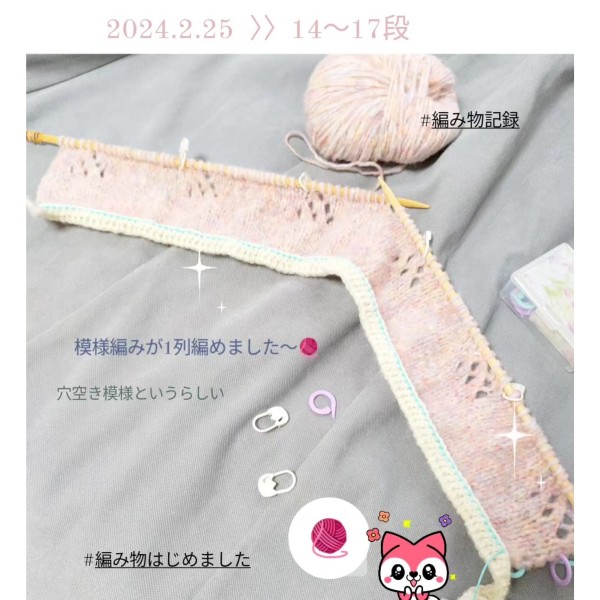 穴空き模様を編む予定で練習するも