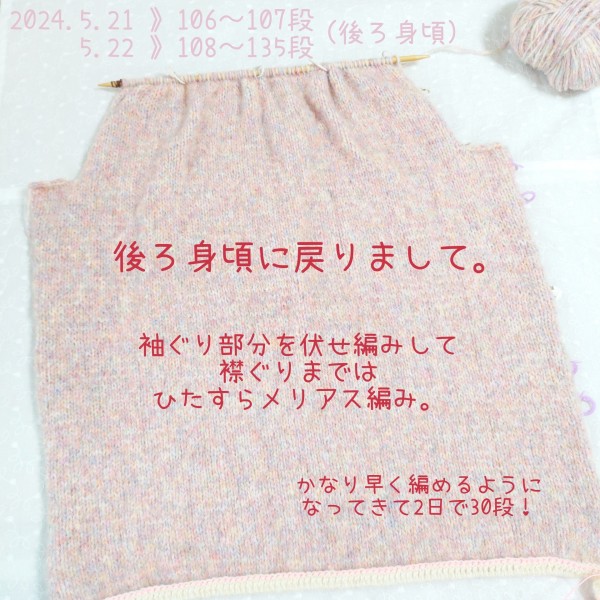 途中、後ろ身頃を編んでいたため