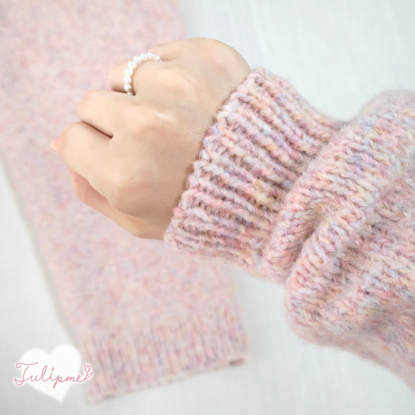 裾と袖口の一目ゴム編みと