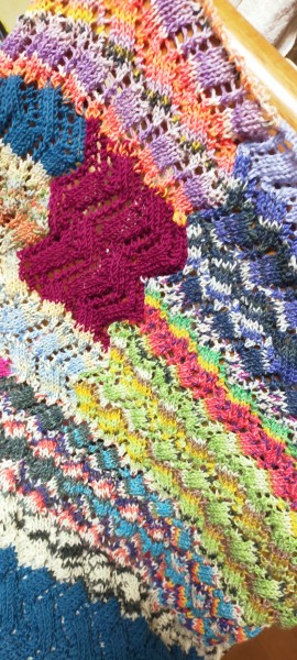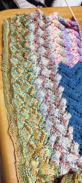 | 溜まりに溜まったソックヤーンを消費するためショール制作中 | |