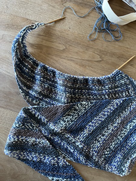 仕上げの段階になって、最後の段を編みすぎていたことに気づき編み戻し。早く仕上げたいけどそろそろ用事の時間。経験上ここで焦ると色々やらかすので残りはあとでゆっくり仕上げます。