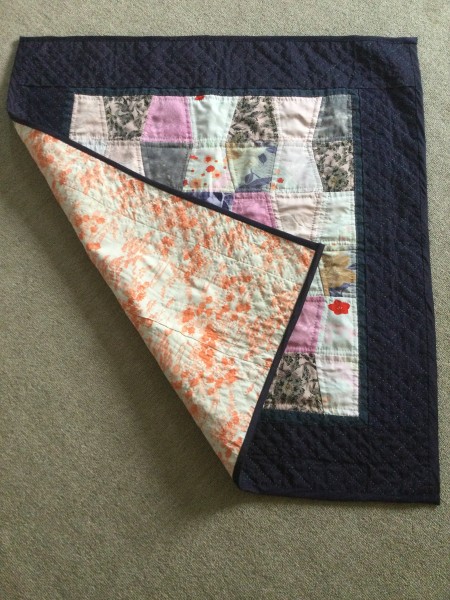 タンブラーのパターンでミシンでパッチワークをしてキルティングは手縫いにする