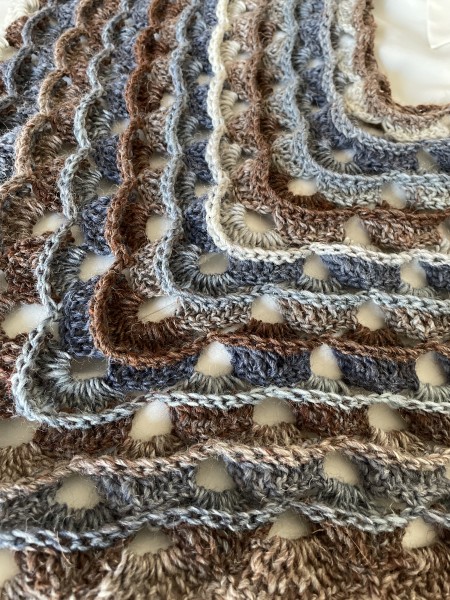 | Vネックのポンチョ モコタロウさんの三角ショールの編み図を参考にさせていだいてます。 |