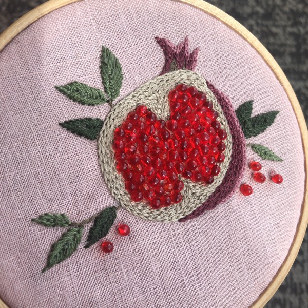 ザクロの粒々をビーズで刺したい!という気持ちで作りました。