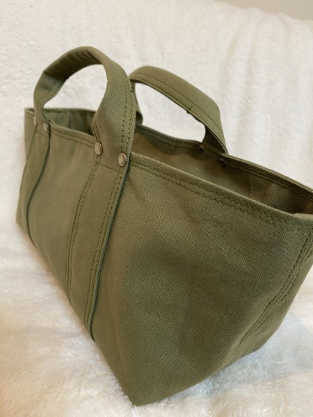 | 吉本典子さんの毎日持ちたい帆布のバックという本を見て作りました 中袋も同じ布で作っているので、11号帆布ですがしっかりできました 縫い目を開いて端ミシンをかけるとき、合わせた布がずれてしまったり、縫い目がまがったりしています カシメを打つ位置に縫い目が重なり、カシメの下で糸も切れています カシメ、難しい… |