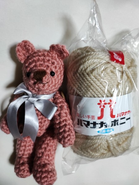 ひと玉ベアのキットでベアを繰り返し編みました。ハマナカボニー使用。もう1体編みたくてこの色も購入。
