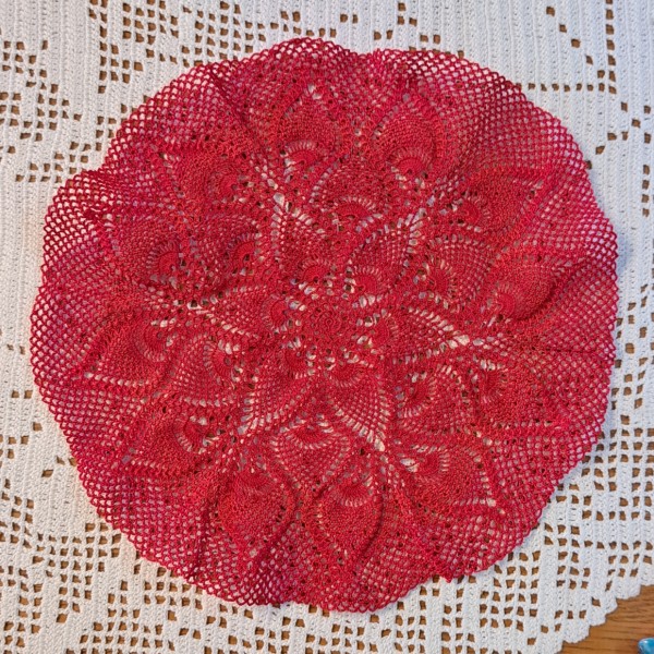 | 縫い糸で編む、レース編みドイリー 直径約20cmくらいでの完成。 ミシン糸①、ミソン糸②、手縫い糸と、3種類の糸でできています。 編む際は柔らかさが糸によって大きく違いましたが、編みあがってみると面の柔らかさや触り心地に差はなかったです。 新しい体験でとても面白かった。 |