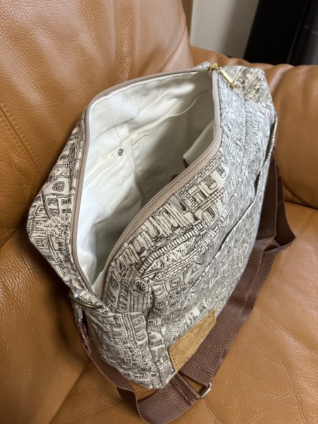 デニム側は斜め掛けに、柄側は肩掛けに出来る持ち手にしました。