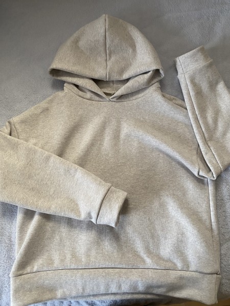 didit sewing さんのフーディの型紙S-Mで作りました。初めて2本針のロックミシンを使用。動画でわかりやすく作れましたが、切り落とす布がうまく生地から離れず一緒に縫い込んだりしてしまいました。次はポケット付きで作りたいです。
