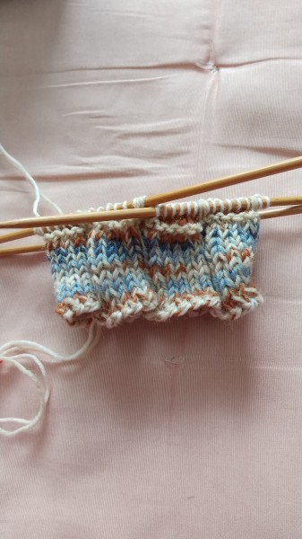 ウツボソックスとウツボかくしを編むつもりで、先ずはウツボソックスから編み始め。