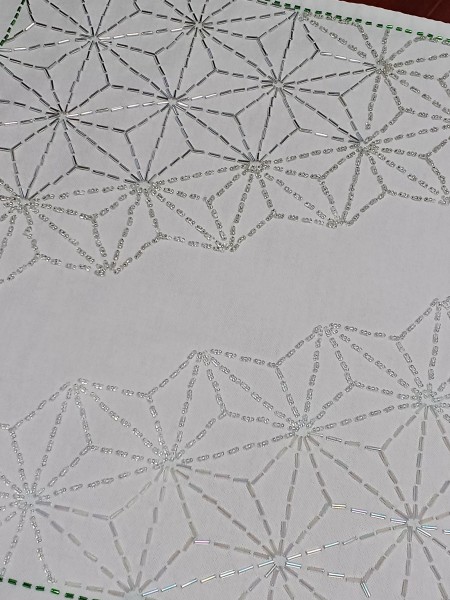 | 『ビーズ刺し子』というのがあると知って、まだ刺していなかったコロンの麻の葉で挑戦してみました。 手持ちのビーズを使いたかったので形も色もいろいろですし、刺し子用の図案なのでズレまくりましたが、何とか可愛く出来たかな~と思います。 図案の真ん中が空いてるのは、色の違うビーズを上手に融合させるのは無理そうだったから。 麻の葉は表布だけに刺したので、枠は裏布と一緒に縫いつけたのですが、針目がきれいに出なかったので刺繍糸で飾ってごまかしました。 布巾としては使えないので、何かの目隠しにしようと思っています。 |