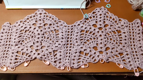 | 去年UVカット機能のある糸でアームカバーを編み始めましたが、寒くなってしまい編みかけで放置したら編み方を忘れてしまい、間違えまくって嫌気が差して解いてしまいました。 気を取り直して、ストールを編むことにしたのですが、凝ったものを編みたくなって選んだ模様なのだけど、無心で編めないのでなかなか進まないです。 |
