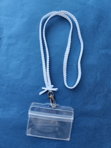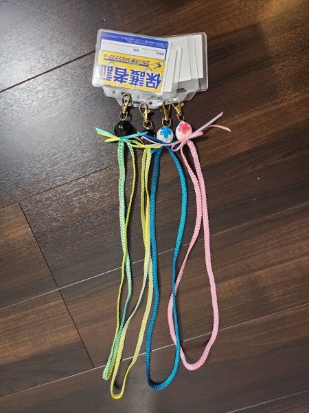 子どものスイミングの保護者用ネームストラップをリボンレイで大量に編みました。夢中でやりすぎました。