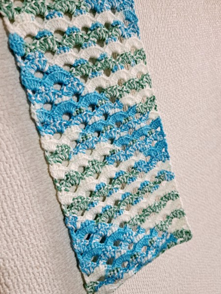 不規則カラーの糸だったのでシンプルに模様編みしてみました!