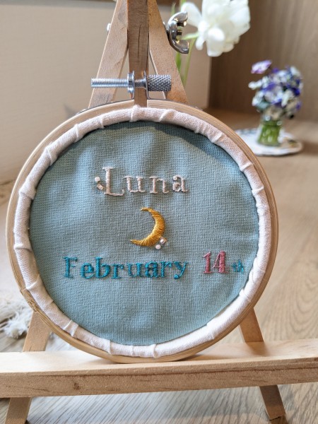 裏面には名前、イメージマーク、誕生日を刺繍しました