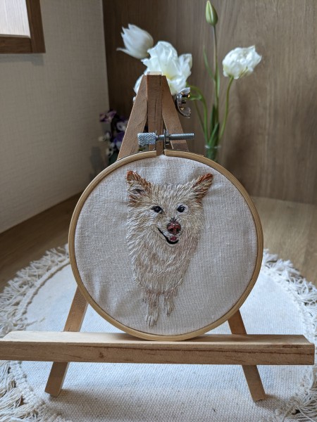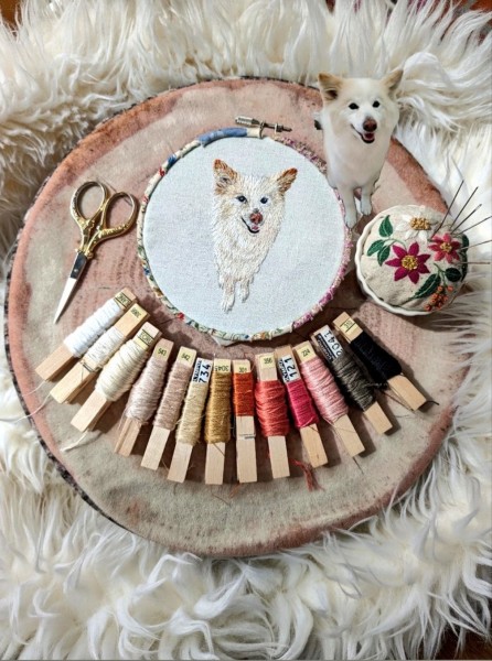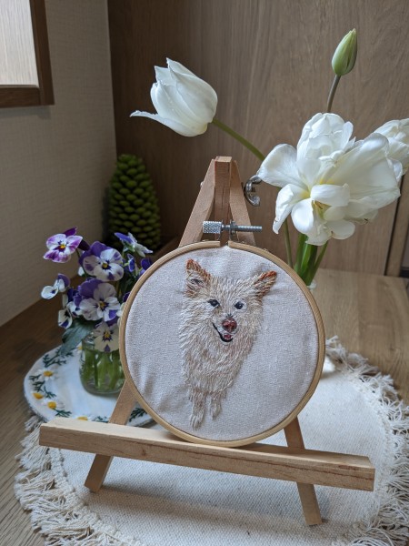 義実家の雑種わんこを刺繍しました。もうすぐ3周忌なので刺繍しながら凄く会いたくなりましたっ ̫ -˘