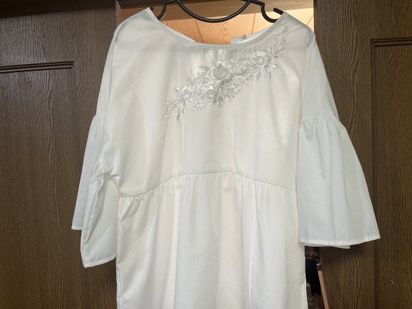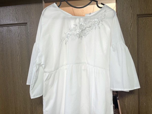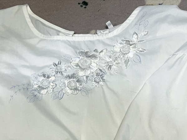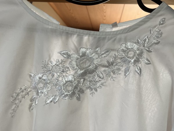 じつはこれで3日目。 襟ぐりに沿ってシンメトリーなデザインにするつもりでいたけど、 途中で大幅に予定変更。