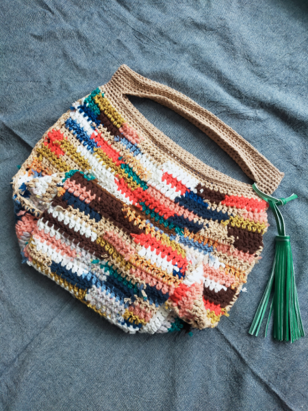 半端になった毛糸でバッグを編んだ