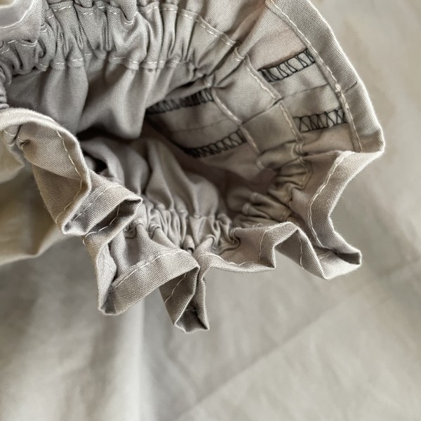 袖のギャザーは、ゴムを通すためのバイアス布を裏に縫い付ける形。