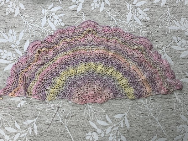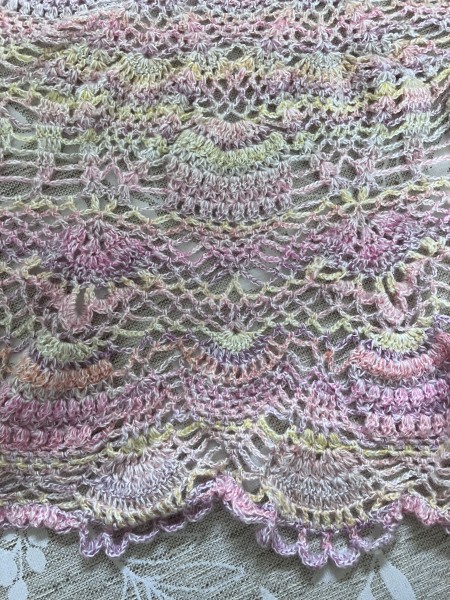 | レース編みドイリーやテーブルクロスのような、繊細な模様のショールを編んでみたい パイナップル編みのドイリーの編み図をアレンジして編んで行きます おかめっず改め、ことりっずです ショール完成しました いやー、この季節に冬物をあむものではないですねぇ ショール、大判なので膝の上に乗せていたので暑くて倒れるかと…:(;゙゚'ω゚'): 出来上がりの方は満足できる感じになりました |