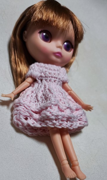 | 身長約15cmのポップマートブライスちゃんにワンピースを編みました。 1年程前に色々な本やYouTubeを参考にリカちゃん向けに数枚編んでます。 その時の編み方を思い出しながら、この子のボディに合わせて 製作しました。 |