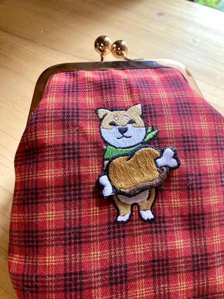 データを作ってミシン刺繍をし、ブローチに仕立てました。バックにつけると毎日着せ替え小物できます。