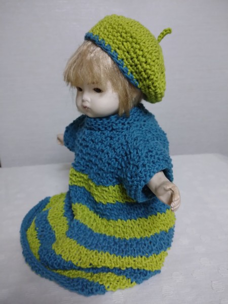 お人形さんの帽子とドレスを編んでみました!