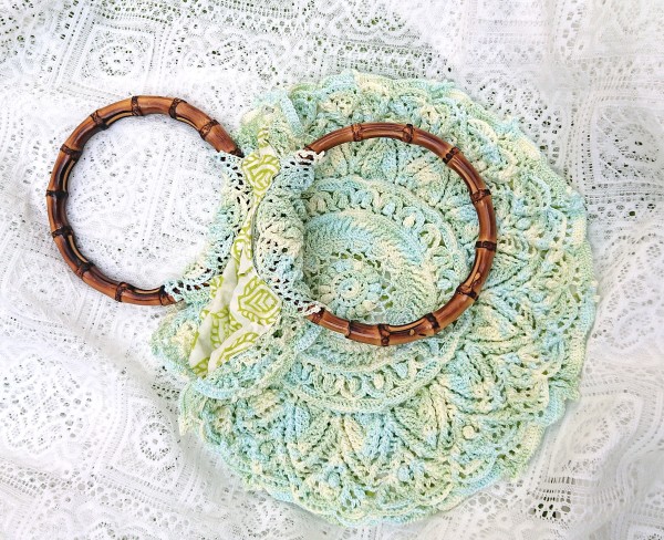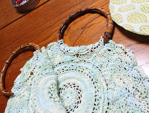 | 立体レースドイリー(毛糸だま2024年夏号)を利用したバッグを製作しました。 | |