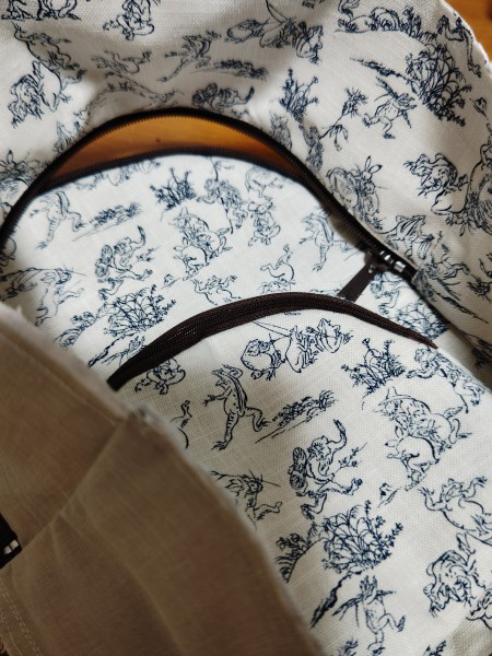 | ミニリュック 身体の小さな祖母の背中に収まるようなリュックをめざして 紐は市販のショルダー紐を背面3点のDカンに通します。上の1点と下左右のどちらか片方の2点を通せばボディバックとしても使えるかな。 |