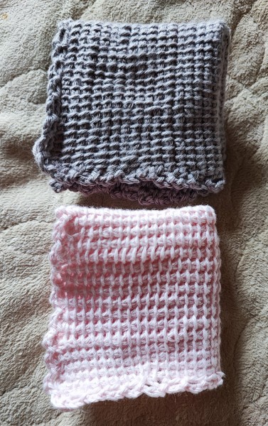 | コットンのミニタオル。 昨夏にコットン糸を沢山買いこんでました。在庫整理を兼ねて気になっていたニッタオルらしきものを編み始めました。アフガン編みをしたかったので、うちにある竹串でとりあえず編みはじめてみました。 1枚目完成22日 2枚目完成26日 |