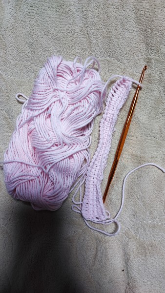 在庫整理のため、引き続き2枚目のピンクも編んでいきたいです。
