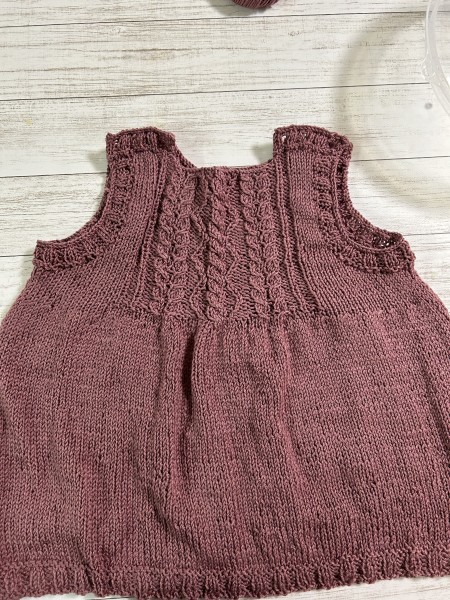 糸を付ける印がついているのは、えり開きの左右を一度に編むことはできないので、この場合は左肩を後から編むと言うことになります