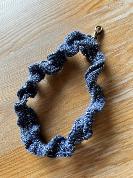 余り糸で編んでみました。糸の太さによってフリルの出方が違うので、何度も目数を調整しながら編み直してベストの目数を探す行程が楽しかったです。
