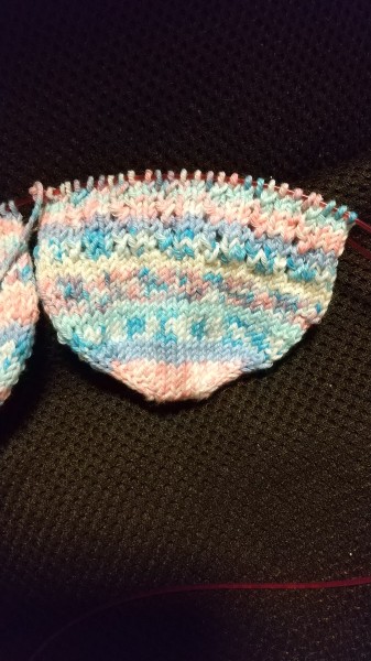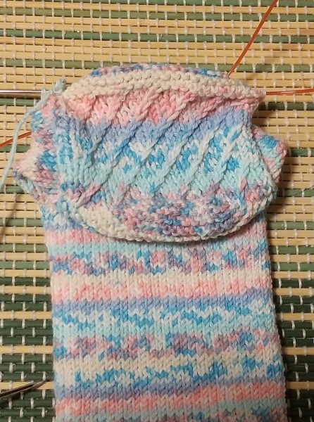 思ったより時間がかかったけれど、足の甲の透かし編みも、踵フラップの斜め模様も、我ながら良く出来た!大満足の仕上がり\(^^)/