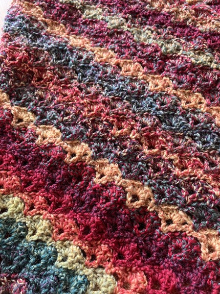 ひと玉編みきって、横90センチ×縦40センチになりました。 もう少し大きくしたいので2玉目に入ります
